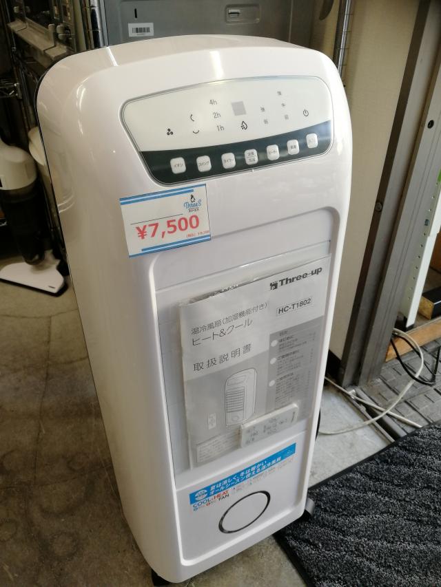 Three-up製 冷風扇 (温風、加湿機能つき) 未使用品が入荷いたしましたー!! こちらの商品は、通常の扇風機に加え、水や氷を利用することで冷たい風を送ることができる優れものです☆ さらに、温風機能や加湿機能も搭載されているので、冬でも大活躍の一品です!!! 商品の状態はもちろん100点満点です笑 一台限定ですのでお早めにどうぞ!!! 季節に合わせて色々な商品を取り揃えております! まだ来店されたことのないお客様も、是非一度ご来店ください! スタッフ一同心よりお待ちいたしております☆ 横浜でリサイクルの買取、不要品のご依頼はスリーエスにお任せ下さい! 現在、都筑区、鶴見区、中区強化買取実施中!!